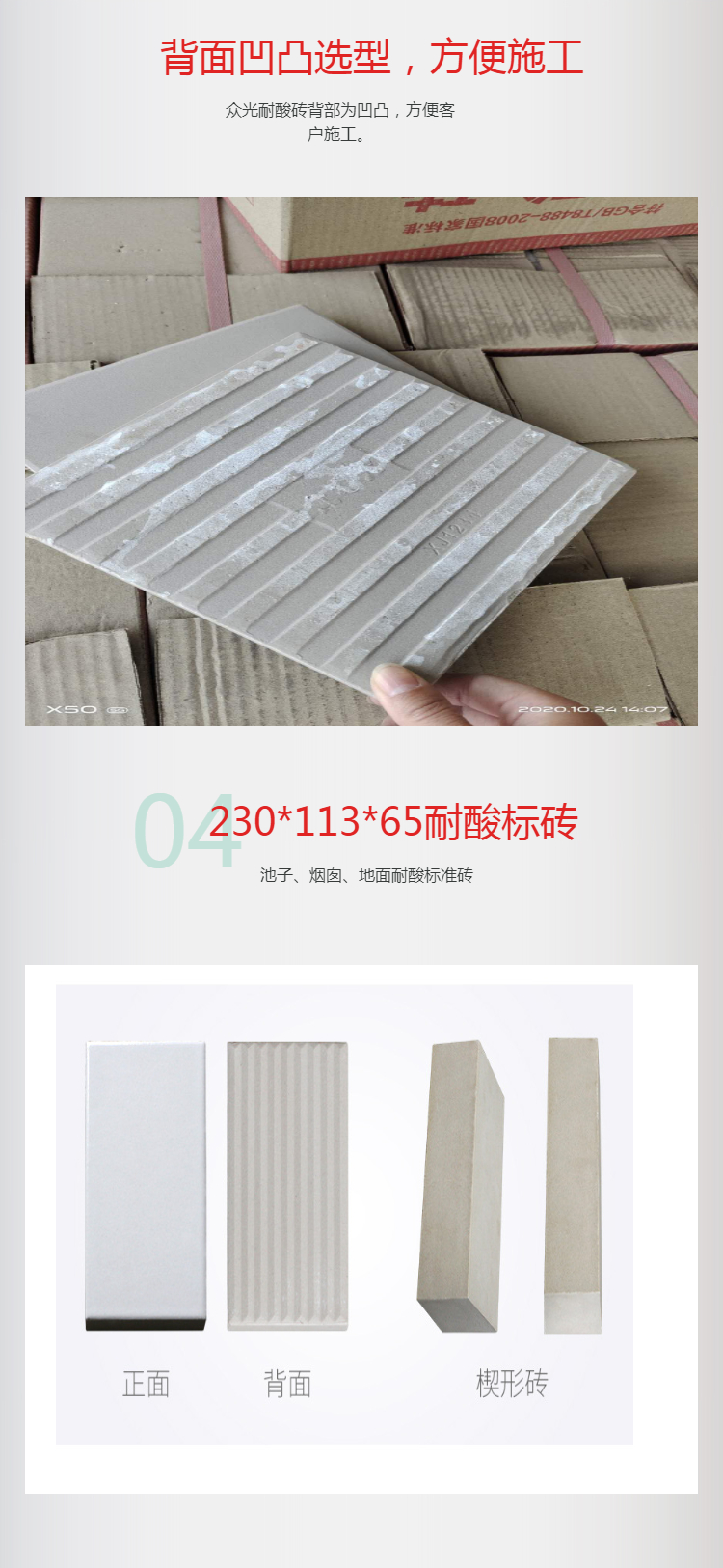 耐酸磚的國家標(biāo)準(zhǔn)是GB/T8488-2008.主要的參數(shù)有:耐酸度,吸水率,彎曲強(qiáng)度,耐急冷急熱性。中冠生產(chǎn)的耐酸磚完全符合耐酸磚的國標(biāo),并且可以提供檢測報(bào)告。其實(shí)選擇耐酸磚的標(biāo)準(zhǔn)主要有兩個(gè):由于耐酸磚的主要成分是二氧化硅,那么我們就可以從成分上觀察耐酸磚是否含有二氧化硅元素。其次可以從外表來看,耐酸磚是否存在裂紋或殘缺,或者是否有斑點(diǎn)、缺釉、干釉等現(xiàn)象出現(xiàn),因?yàn)檫@些問題都是施工過程中的不達(dá)標(biāo)導(dǎo)致的。后呢我們可以從耐酸磚的規(guī)格上判斷,耐酸磚的規(guī)格都是嚴(yán)格按照一定的尺寸來進(jìn)行加工的,這樣便于鋪設(shè)時(shí)候的整齊美觀,如果出現(xiàn)規(guī)格尺寸大小不一致的情況也是耐酸磚不達(dá)標(biāo)的表現(xiàn)之一。